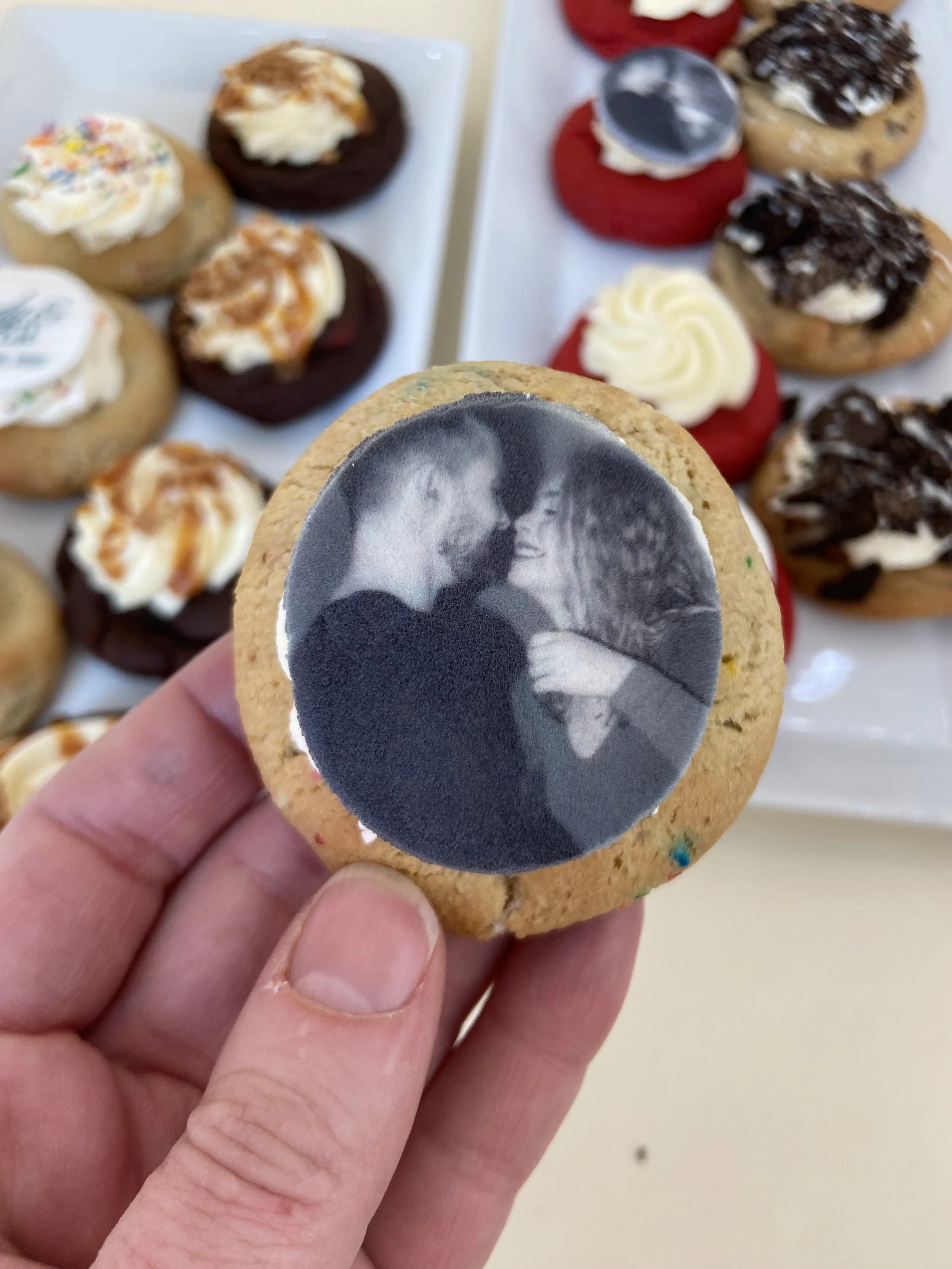 All our cookies can be customized with your engagment photos, initials or even your pet’s photos! The perfect way to create a delicious memory that’s all about you!